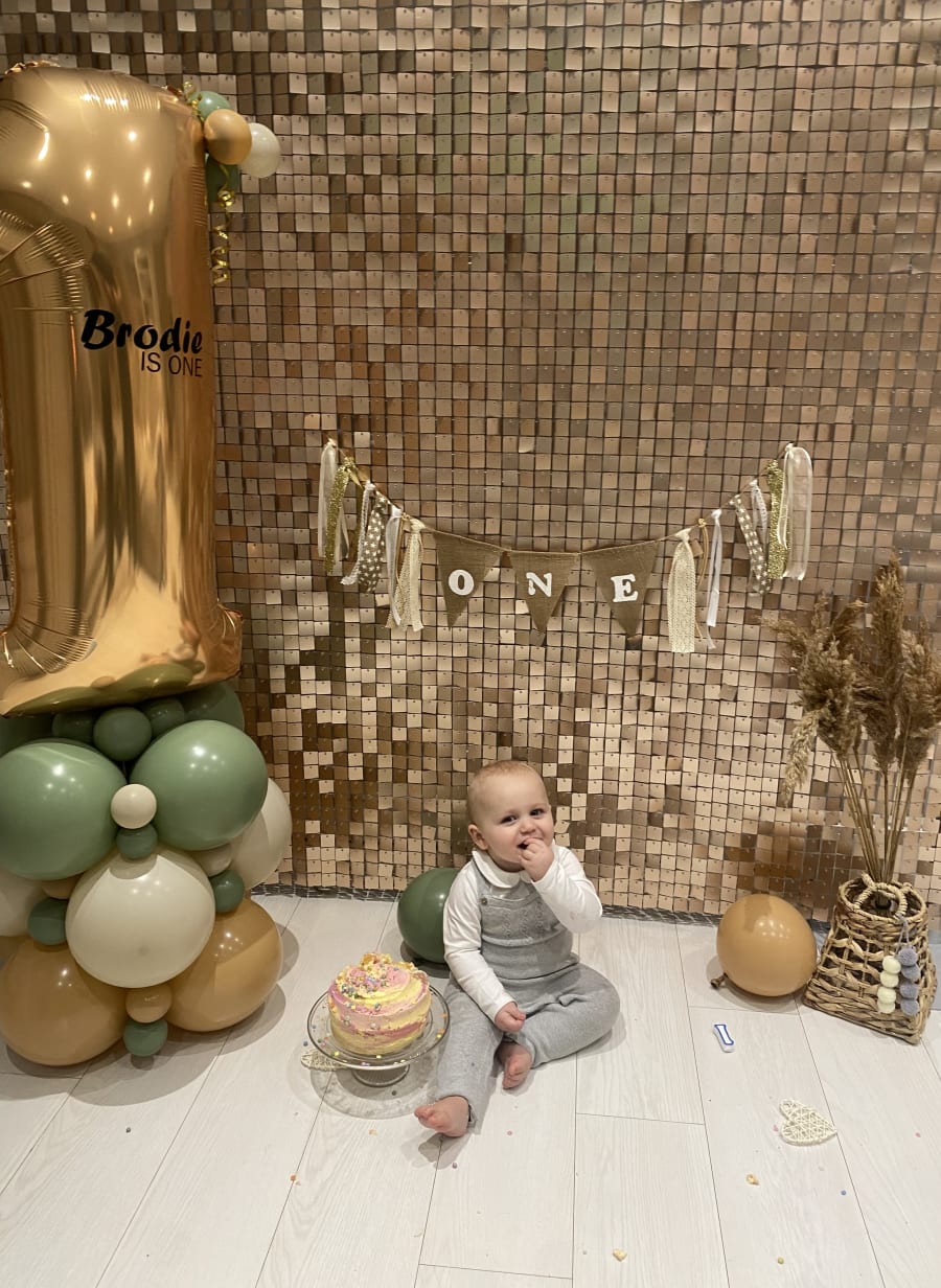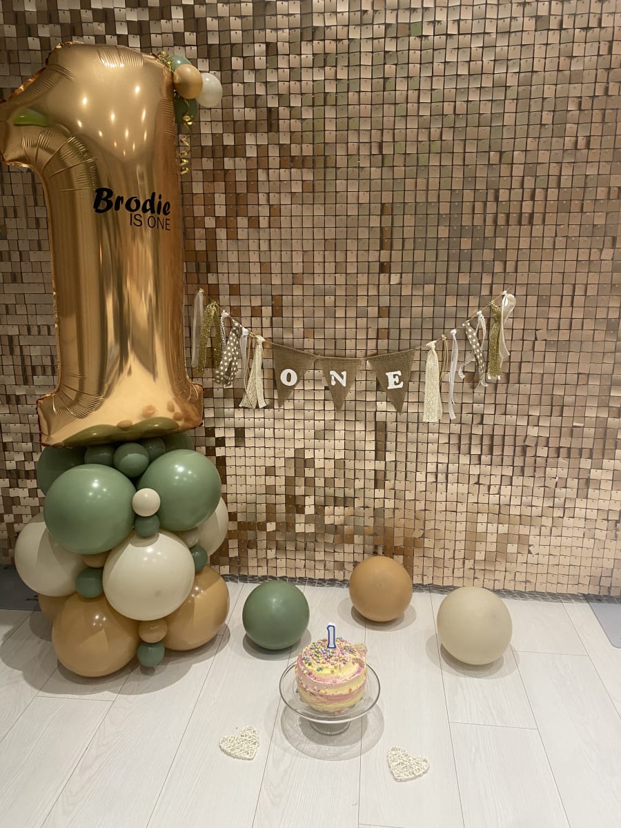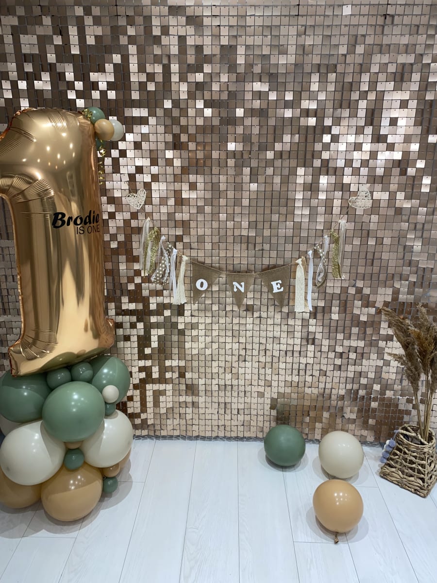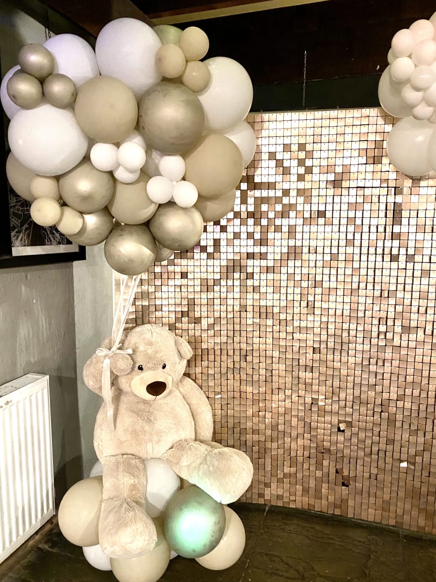 You may hire out the beige shimmer wall on its own or go with a beautiful balloon and shimmer combo.