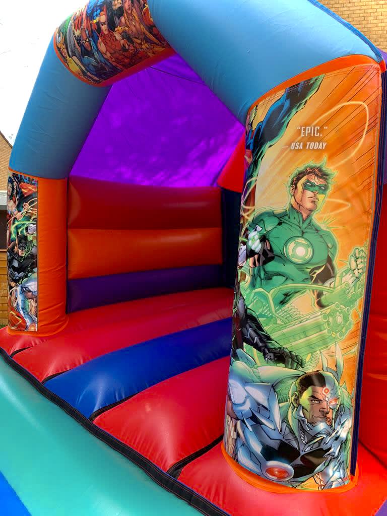 Multi Coloured Super Hero Bouncy Castle 15x11