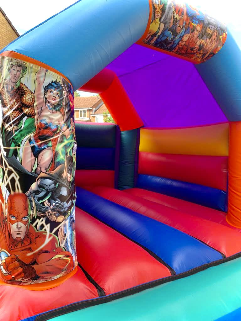 Our amazing super hero bouncy castle. This multi coloured bouncy castle features all your favourite super hero’s such as Batman, Superman, superwoman.
