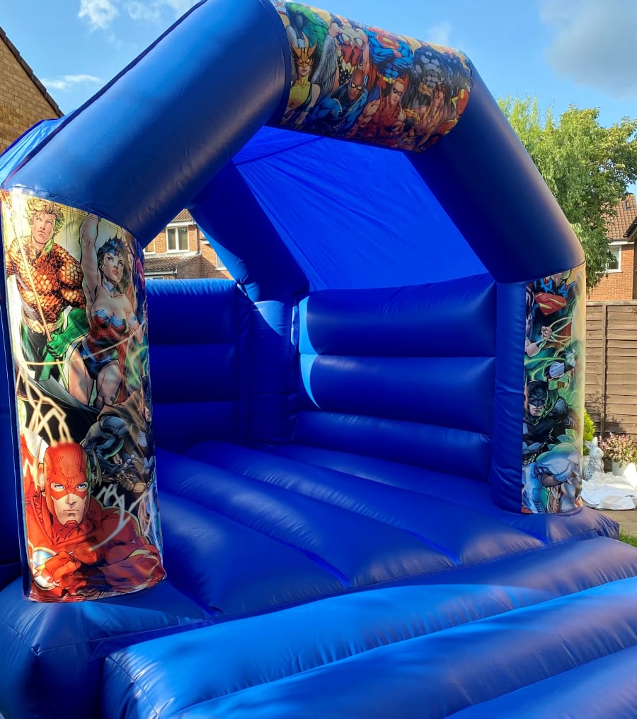 Our amazing super hero bouncy castle. This Navy Blue bouncy castle features all your favourite super hero’s such as Batman, Superman, superwoman.
