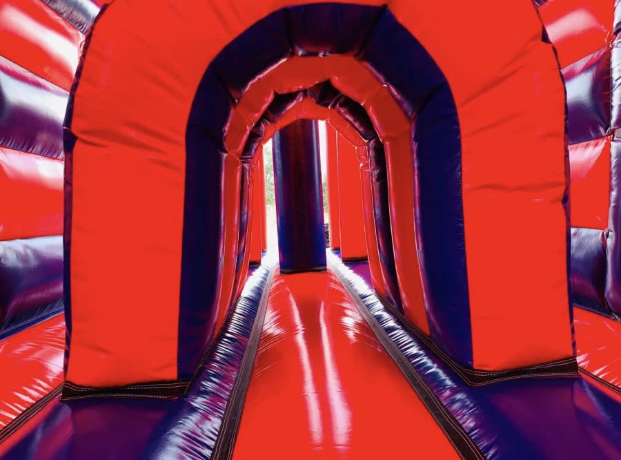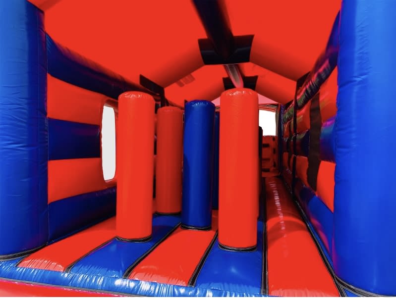 This vibrant red and blue assault course measures an impressive 42x12ft, offering a thrilling challenge packed with inflatable obstacles, tunnels, and walls to climb over and crawl under. Perfect for birthday parties, school fetes, sports tournaments, christenings, weddings, and any event where you want guests to let loose and have an epic time! 🏃‍♂️🏃‍♀️