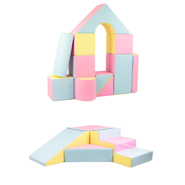 Our beautiful 11 piece soft play building blocks with step & slide is the perfect combo to keep your little ones entertained and allows them to climb and slide for endless fun.