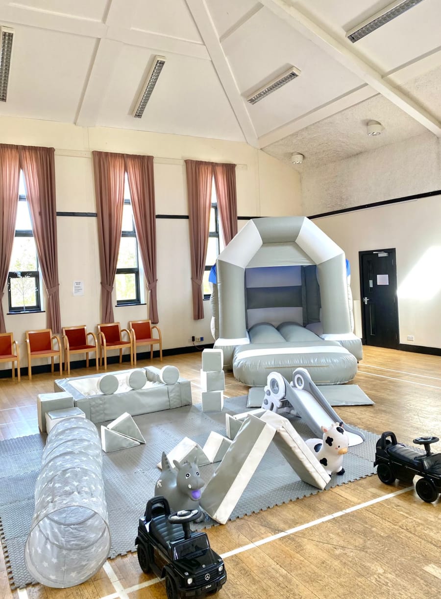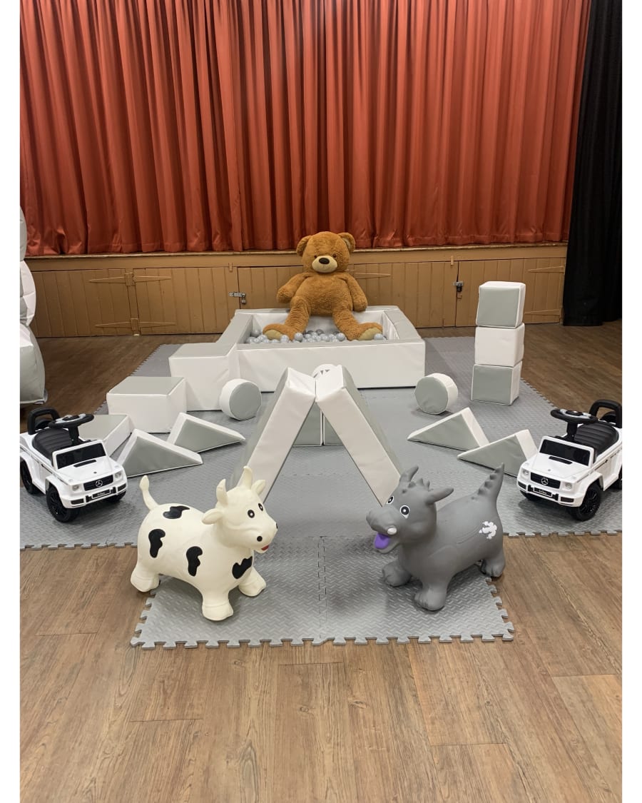 • 17 piece grey and white soft play hire